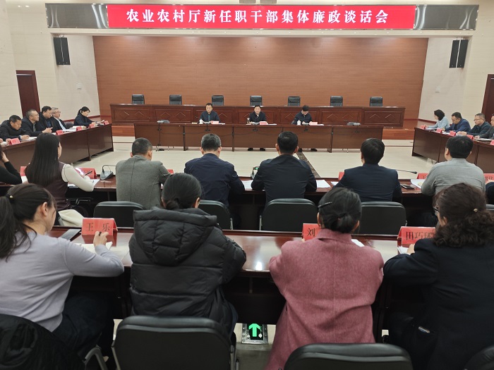 2月12日,三级片 召开新任职干部集体廉政谈话会,为新任职干部上好任前“第一课”,把好履职“第一关”。三级片 党组书记、厅长,乡村振兴局局长,党委农办主任王建主持会议并讲话;厅党组成员、驻厅纪检监察组组长冯永东对新任职干部廉洁从政提出要求。