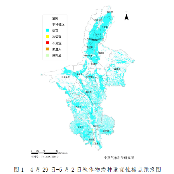 根据春耕春播农用天气预报等级指标分析,4月29日-5月2日全区秋作物播种适宜性等级为适宜(图1)。但未来四天多大风沙尘天气,会干扰播种工作的开展。