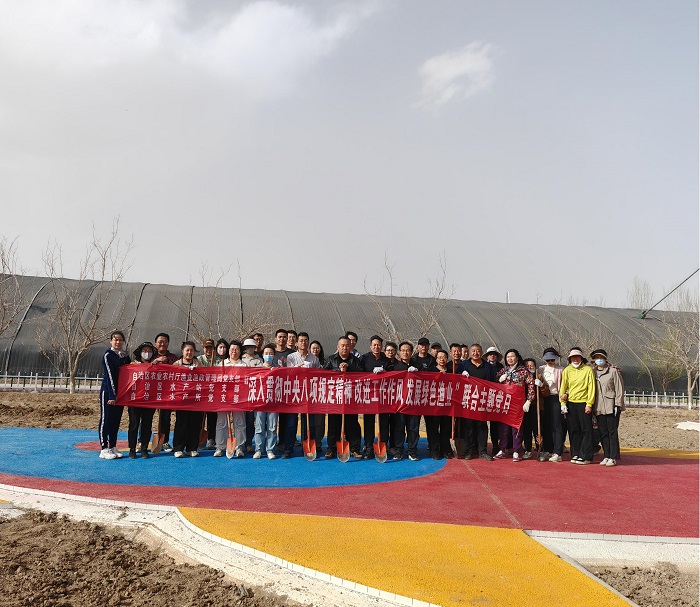 为深入学习贯彻党的二十大和二十届三中全会精神,锲而不舍落实中央八项规定精神,推动作风建设常态化长效化,弘扬绿色发展理念,将廉洁意识与生态保护紧密结合,让清风正气如同茁壮成长的树木深深扎根于每名党员干部心中,成为推动产业发展的强大动力,4月11日,农业农村厅渔业渔政局党支部、自治区水产技术推广站党支部、自治区水产所党支部联合开展“深入贯彻中央八项规定精神 改进工作作风 发展绿色渔业”主题党日暨义务植树活动。